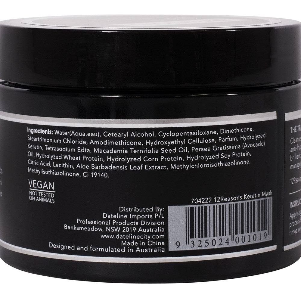 Restore strength to damaged, over processed hair and banish breakage! 12 Reasons Keratin Mask deeply hydrates, protecting and fortifying each strand and helps to smooth split ends. Formulated with Hydrolysed Keratin, rich in Amino Acids, to protect and fortify damaged hair. Moisturising Macadamia Oil hydrates dry and damaged hair, bringing softness and shine back to dull, damaged hair.