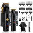 - 【Professional Barber Kit】Barber accessories contain a cordless hair clipper,a hair trimmer, barber apron, USB cord for quick charge, barber brush,oil bottle, and 2 professional scissors for hair cutting.With 8 premium guard combs,3 trimmer guards and the sharpest blades on the market,It includes everything you need for a pro-like cut from the comfort of your home.