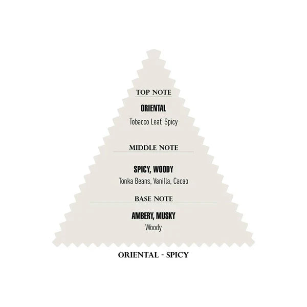 - Top Note: Oriental – Tobacco Leaf, Spicy