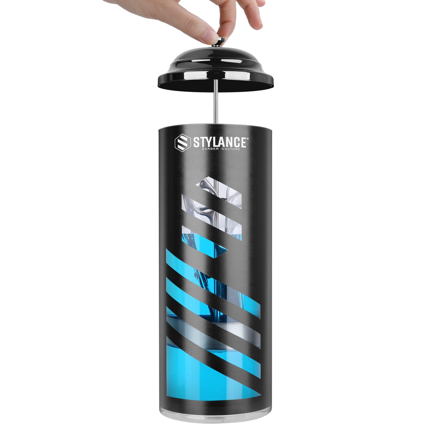 Ensure hygiene and professionalism in your grooming space with this sleek and functional disinfectant jar.