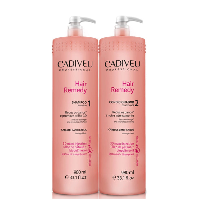 CADIVEU HAIR REMEDY SHAMPOO CONDITIONER KIT REDUCE DAMAGE DAMAGED HAIR 3D SHINE 2X980ML/2X33.13FL.OZ
