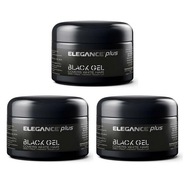 Strong hold gel formula plus instant black hair touch up for white / gray hair. The perfect solution to cover gray hair while adding a strong hold hair gel instantly. Style your hair and cover white/grey hair at the same time. This styling gel not only finishes shaping your hair, it assists in concealing the undesirable grey/white hair. Style hair first and depending on the length and thickness of your hair apply the tinted gel to gingerly to cover the dry grey/white hairs. The black tint and subtle styling gel will last for the entire day, although excessive sweating activities should be avoided. The hold and tint are temporary and can be used occasionally or on daily basis. Elegance Plus Styling Black Gel is designed for both hold and a fast, daily solution for grey/white coverage.