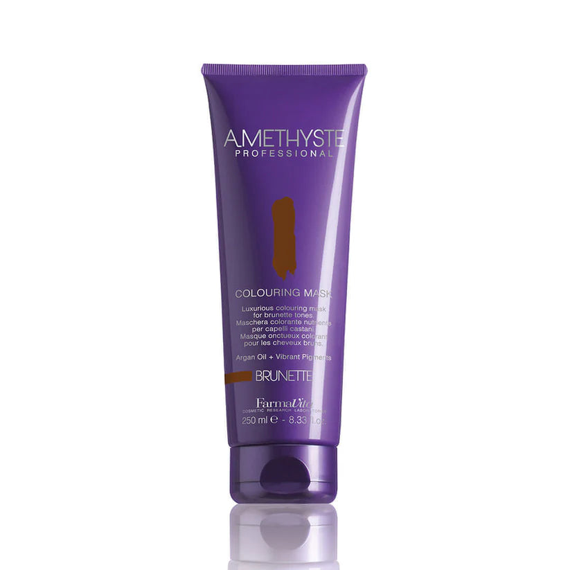 Experience salon-level luxury with Farmavita Amethyste Brunette Colouring Mask 250ml. This professional-grade mask provides long-lasting intense color and hydration, leaving hair feeling soft and healthy. It's enriched with natural ingredients and protective conditioners to intensely nourish and protect. Enjoy beautiful shine and up to 40% less colour fade.