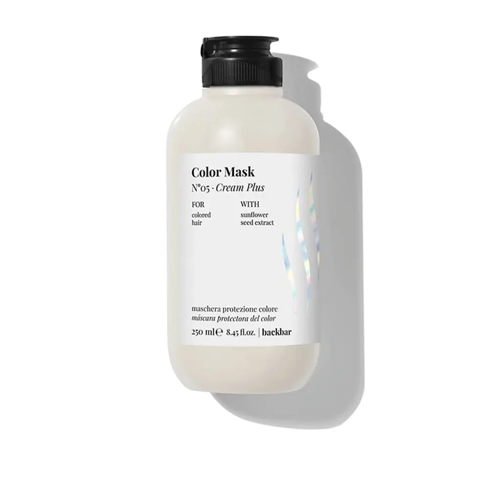 Farmavita Backbar Color Mask N°05 - Cream Plus 250ml features a professional-grade formula enriched with sunflower oil and shea butter, ideal for maintaining color vibrancy and shine. It provides intensive nourishment to combat damage, while the balanced pH restores hair’s natural moisture levels. This creamy mask is a must-have product for revitalizing colored hair and keeping it looking shiny and healthy.