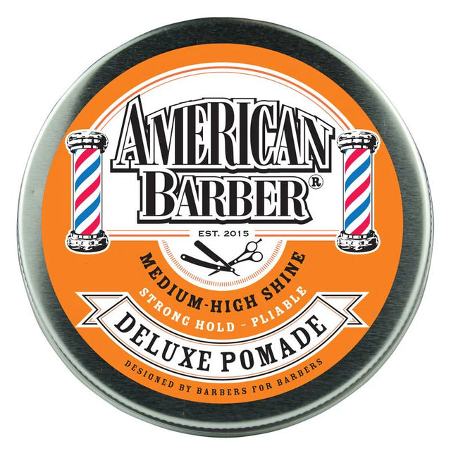 American Barber Deluxe Pomade (300ml) is a premium hair styling product designed to provide a medium to high shine with a flexible, long-lasting hold. Ideal for classic styles such as pompadours, slick backs, or side parts, this pomade delivers the perfect combination of control and shine without feeling greasy or heavy.