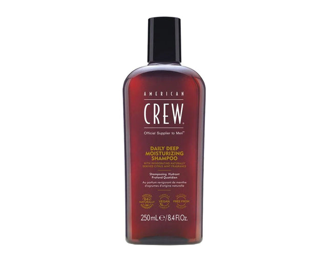 What are the benefits and features of American Crew Daily Deep Moisturizing Shampoo 250ml?- Delivers much-needed hydration to dry hair.
