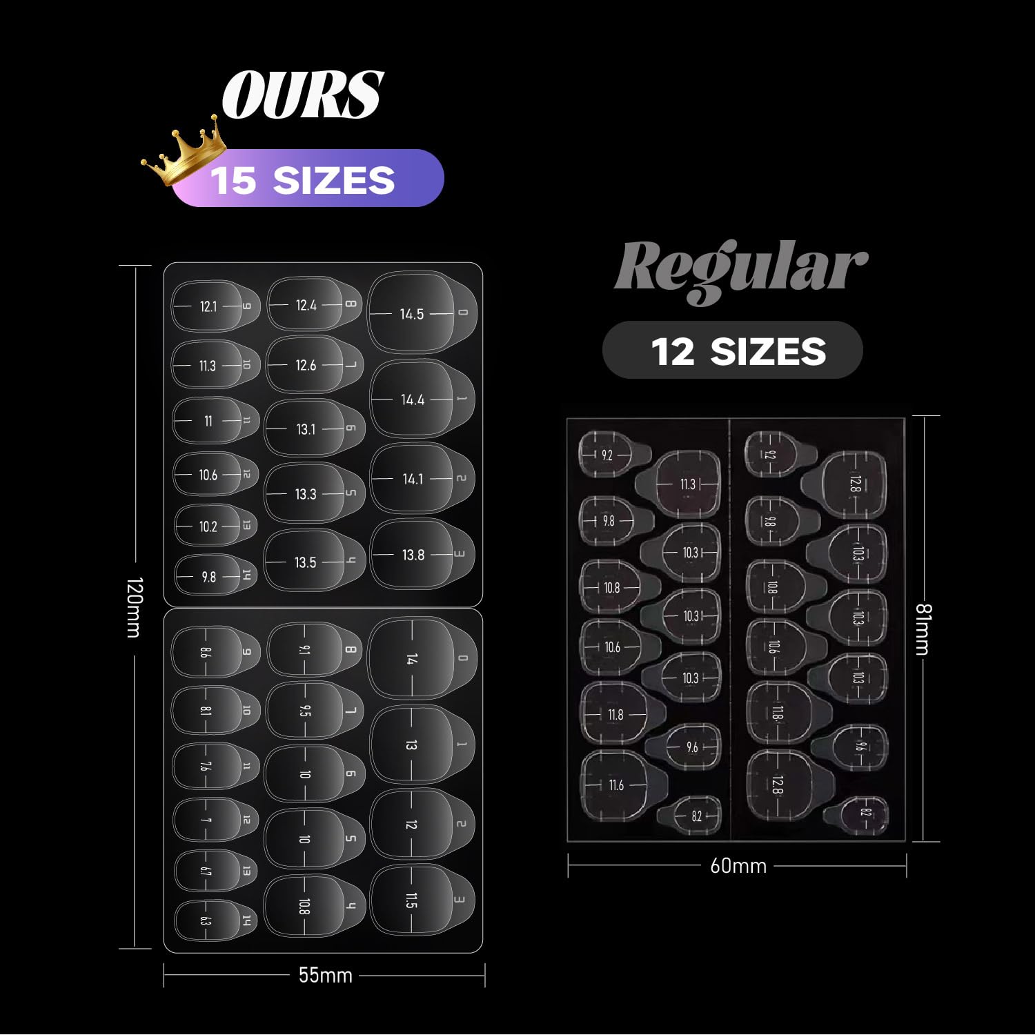 • 🔢 15 Versatile Sizes – Comes with 20 sheets (600 tabs total) in 15 numbered sizes to fit almost all nail shapes and lengths.