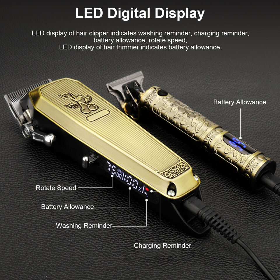 LED Digital Display: LED display of hair clipper indicates washing reminder, charging reminder, battery allowance, rotate speed; LED display of hair trimmer indicates battery allowance. The set can be used as a birthday gift, festival gift for dad, husband, boyfriend and male friends.