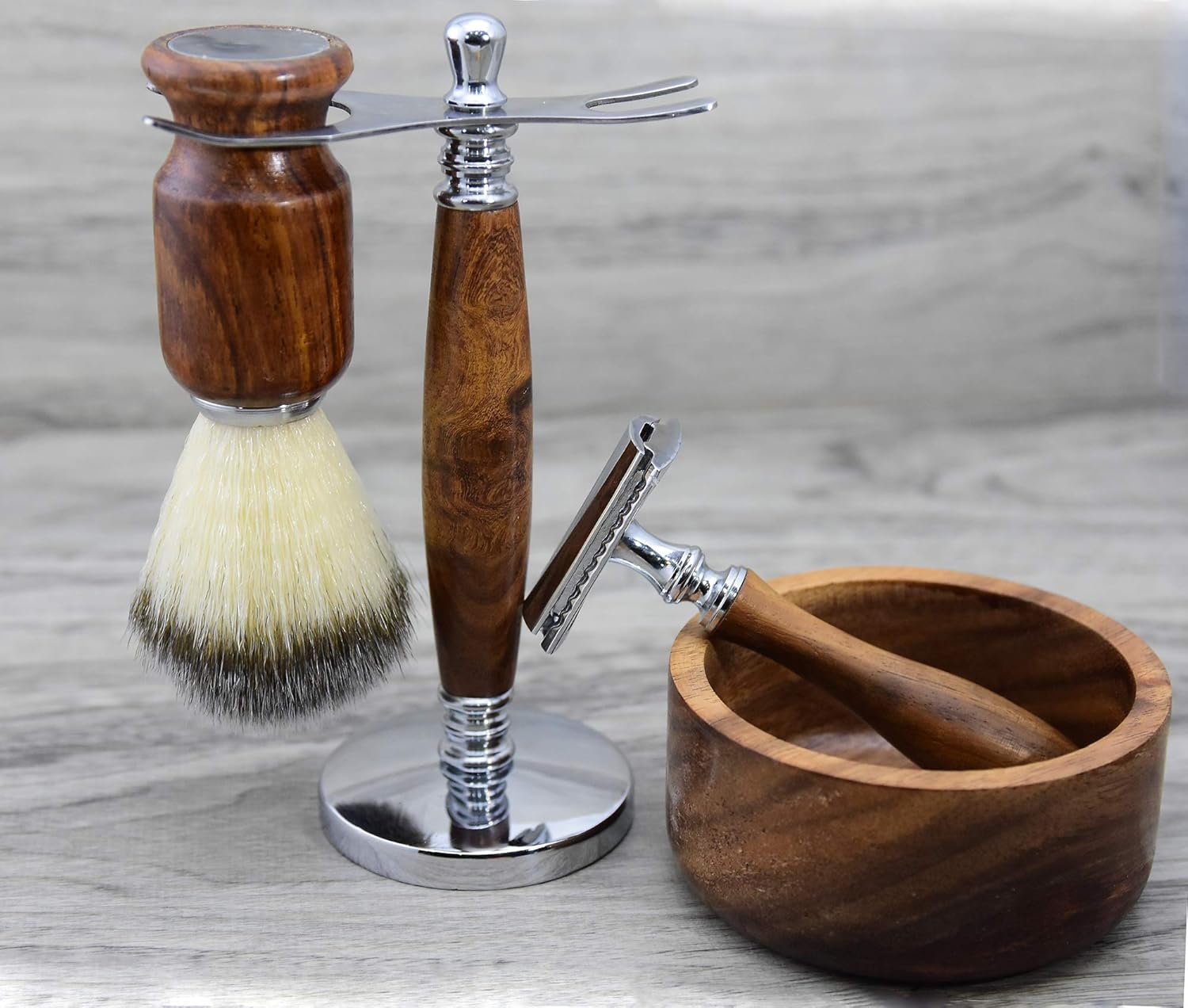 NBHS Safety Razor Shaving Kit – Stainless Steel Razor & Brush Men’s Gift Set