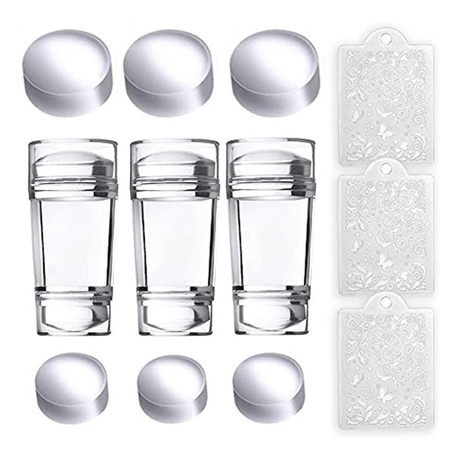 NBHS 12-Piece Nail Stamper Kit – Clear Silicone Stampers with Scrapers