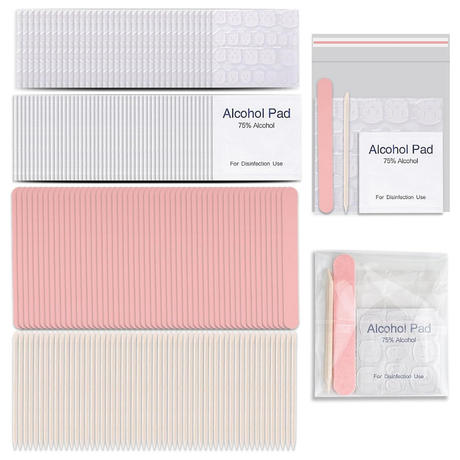 NBHS 50-Piece Press-On Nail Prep Kit – Files, Pads, Sticks & Bags (Pink)