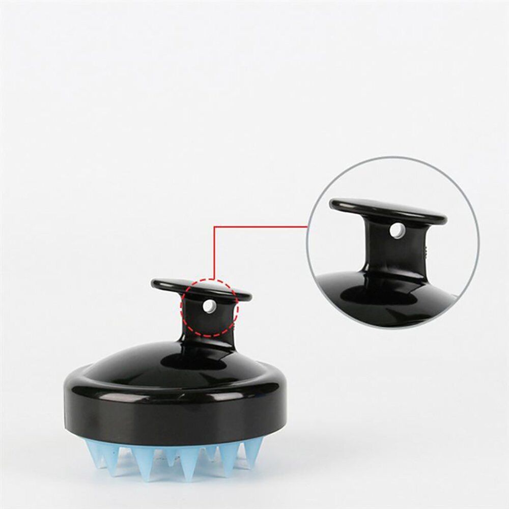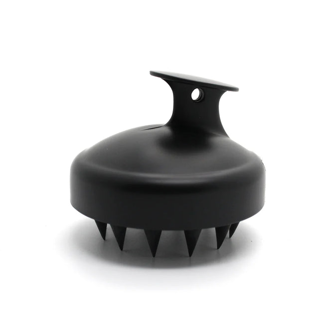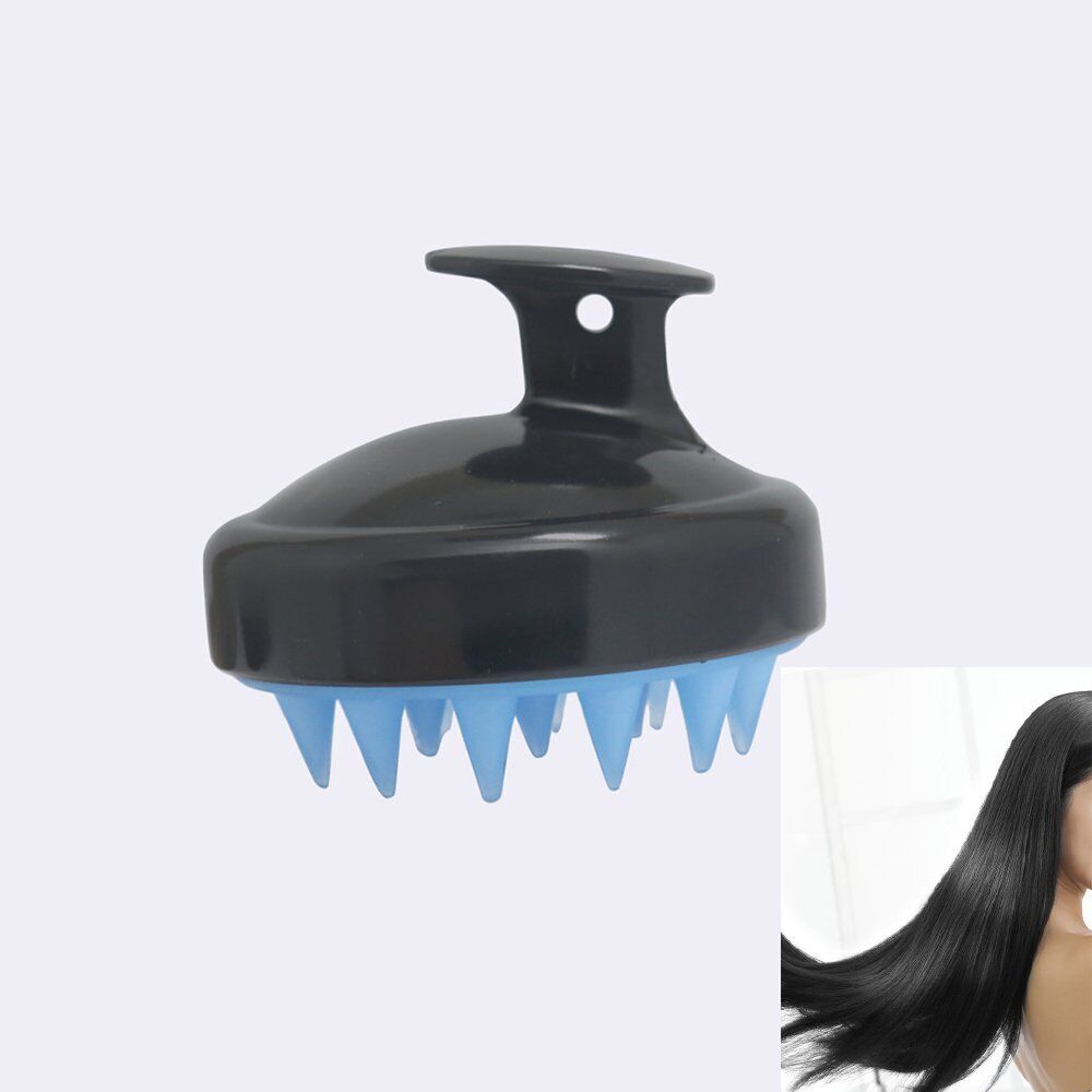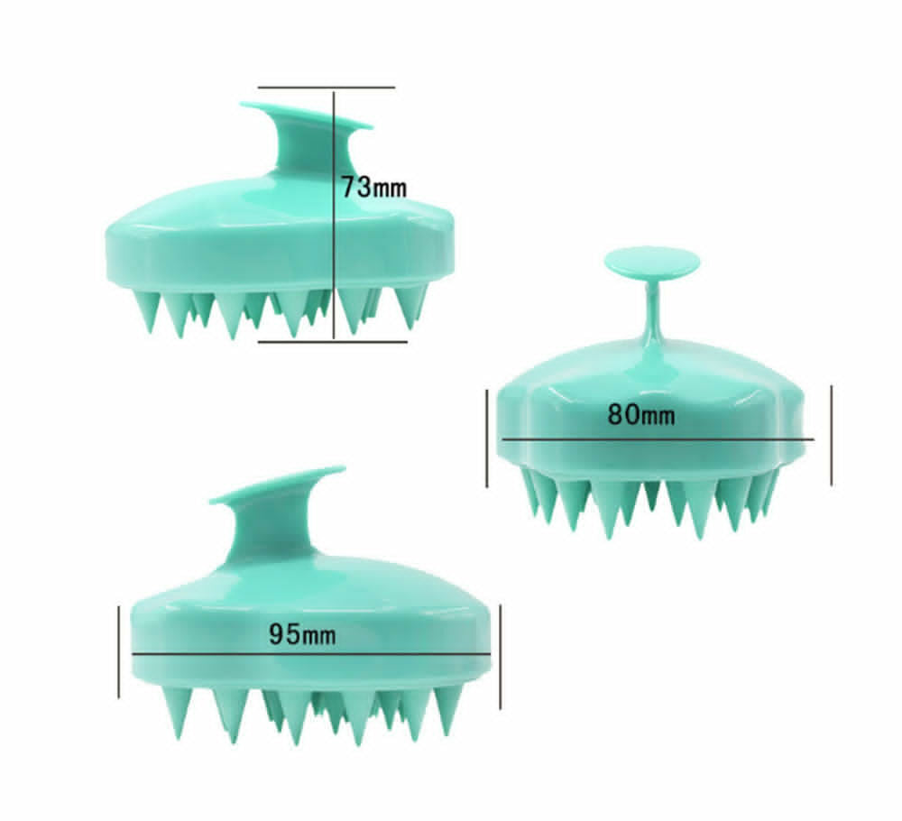 Scalp massager with soft thick silicone bristles stimulate blood flow to the scalp and oil glands.