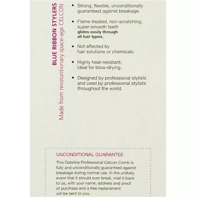 Enhance your hairstyling with the Dateline Professional Blue Celcon 301 Plastic Teasing and Lifter Comb. This versatile comb is designed for professional and home use, perfect for teasing, lifting, and adding volume to your hair. Made from durable Celcon plastic, it is heat-resistant, chemical-resistant, and virtually unbreakable, ensuring long-lasting performance.