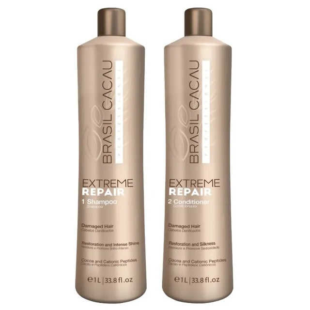 Brasil Cacau Extreme Repair Shampoo & Conditioner Duo offers deep restoration, frizz control, and hydration in a salon-sized duo, making it the ultimate choice for transforming damaged hair into smooth, healthy locks.