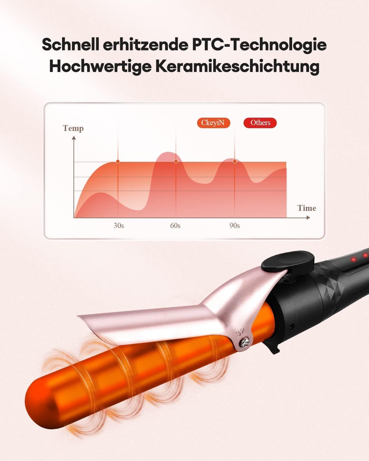 CkeyiN Curling Iron Set 4 in 1 Multifunctional Interchangeable Ceramic Coating Curling Iron Curler Kit Curling Iron with Various Attachments Large and Small Curls Set